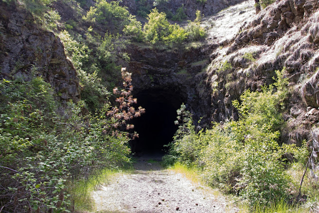 Rock lake is an obvious product of the Missoula Floods, with its sheer basalt walls. The railroad is carved right into the side of one of those and as a result, there are a number of awesome tunnels and trestles. Not the wimpy kind, but the super real deal.