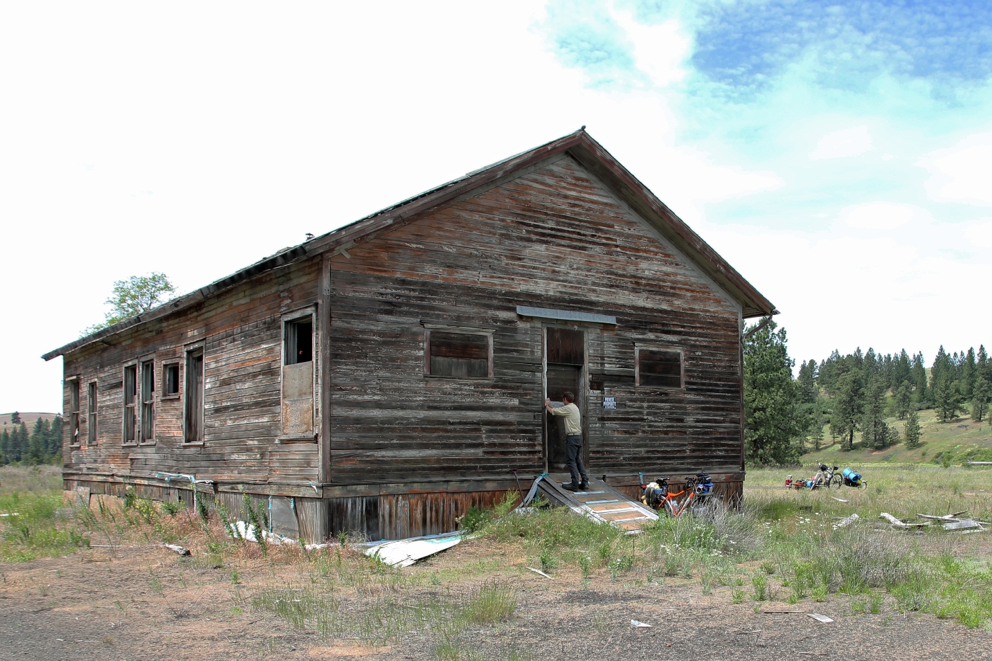 The proprietor (who we didn't at that moment know was the proprietor) was out front smoking and there wasn't a soul inside. We struck up a light conversation, about the availability of coffee and some breakfast food, and of course about what the hell we were doing in Rosalia and where we were coming from and where we hoped to end up. And "man, those are some crazy tires. Never seen anything like 'em". If I had a quarter for every time someone said something about my tires on this trip, I could buy a motor home and be done with all this cycling nonsense.